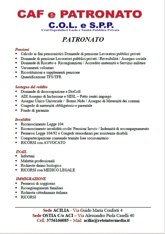Cral Opedalieri Lazio e Sanità Pubblica Privata PATRONATO